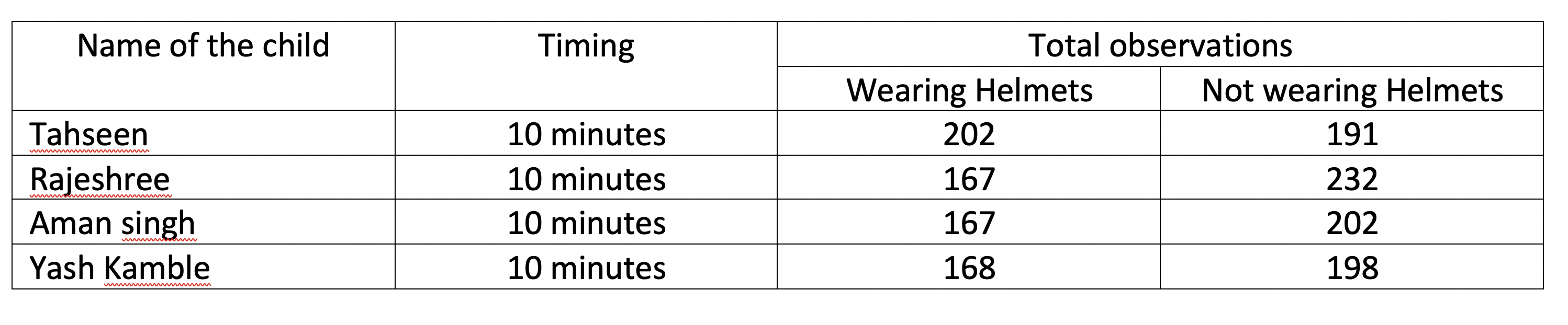Step 3: Ask students to present  their data to you. If students have collected their data individually then ask them to consolidate their data in their group. You can choose to structure this part of the lesson in any of the following ways.