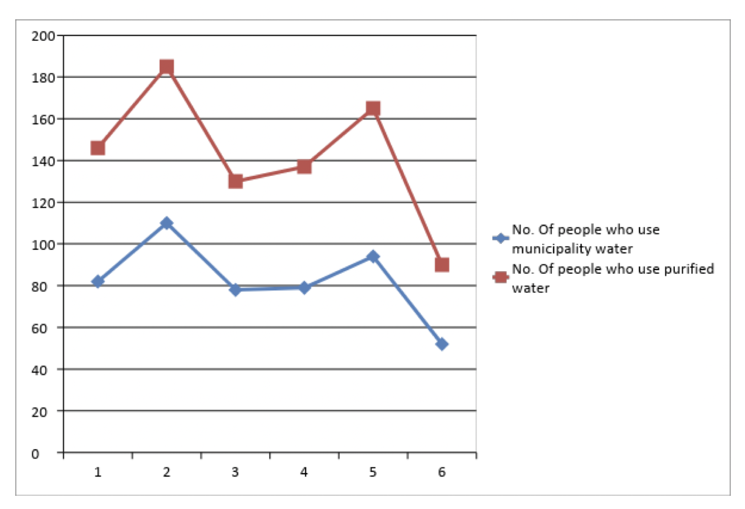 No. of people using purified water Vs No. of use municipality water