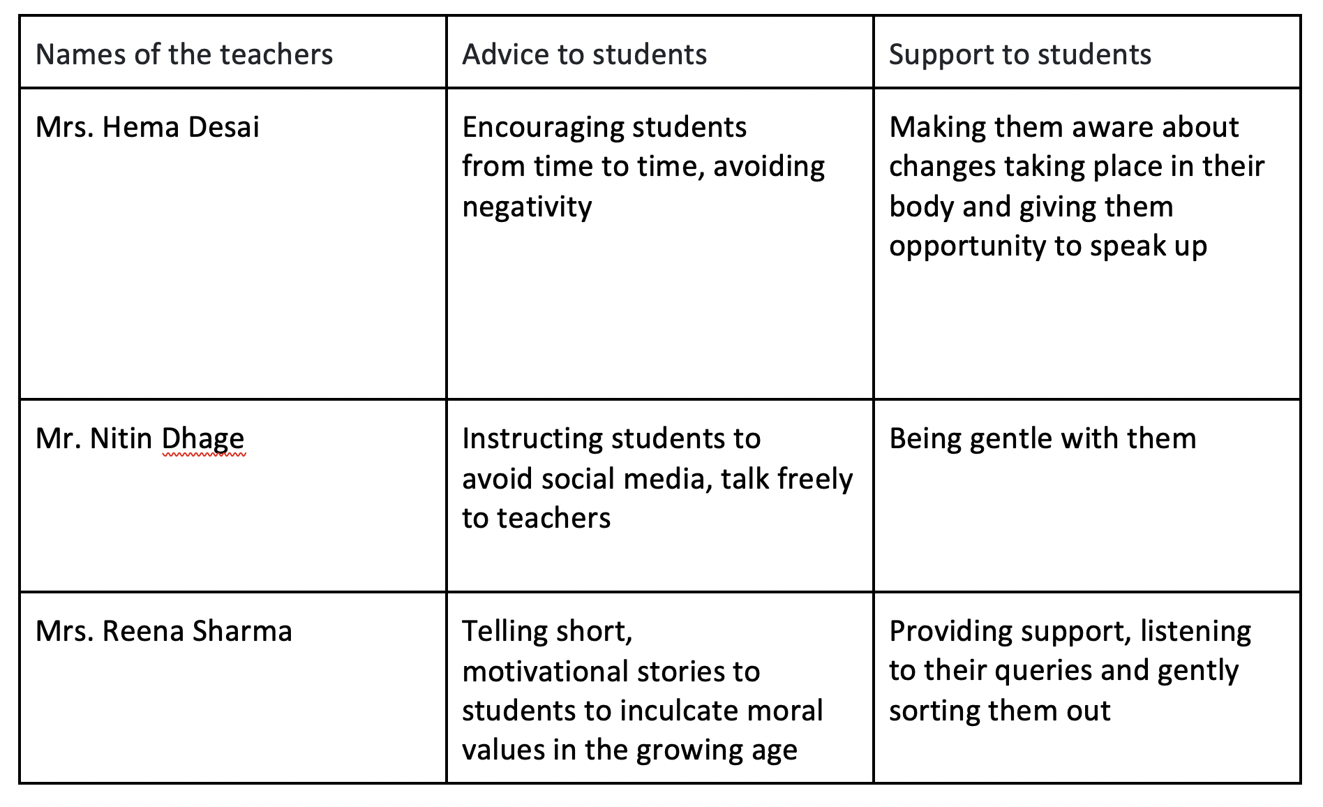 • Interviews with teachers on their ways to manage teenage aggression, guide the students and provide positive environment are