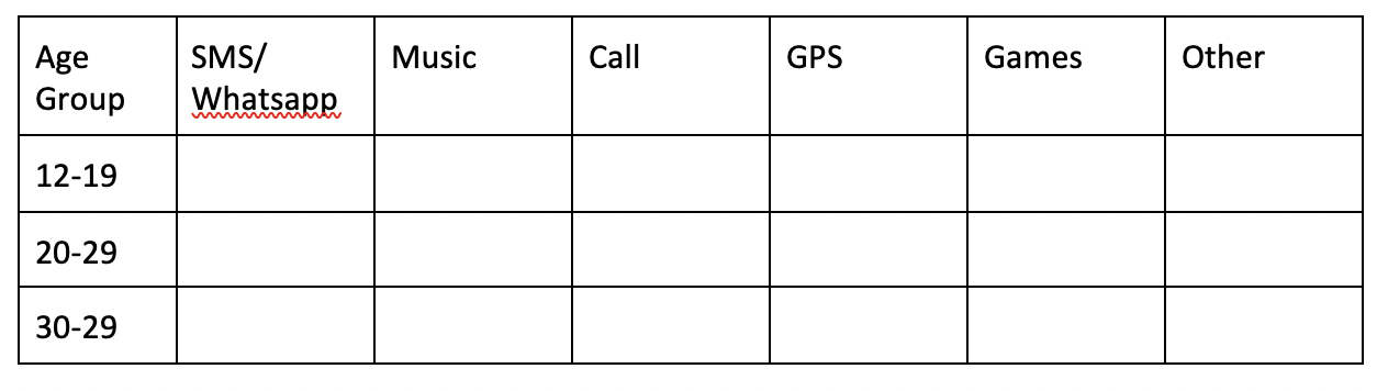 3. Ask students to present the interview data into tabular form.